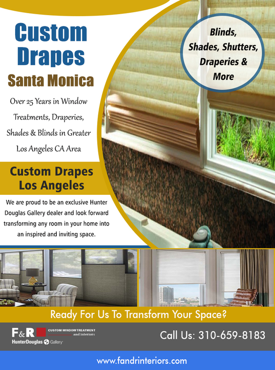 Our Site : http://fandrinteriors.com/shades/ Custom Drapes Santa Monica is a type of window covering. We offer many different kinds of window blinds which use a variety of control systems. A typical window blind is made up of several long horizontal or vertical slats of various types of hard material, including wood, plastic or metal which are held together by cords that run through the blind slats.